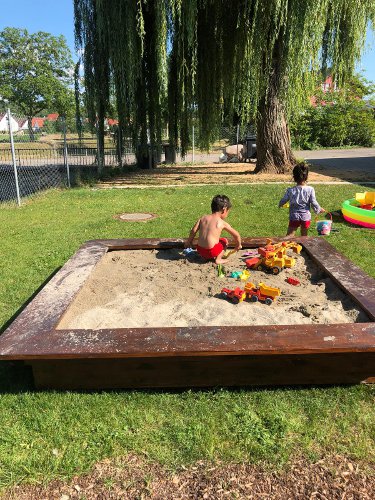Der Außenbereich hat durch diese Aktion absolut gewonnen, die Bewohner haben eine schöne Möglichkeit bei warmen Temperaturen sich nett niederzulassen und die Kinder feiern natürlich den Sandkasten und die Schaukel.