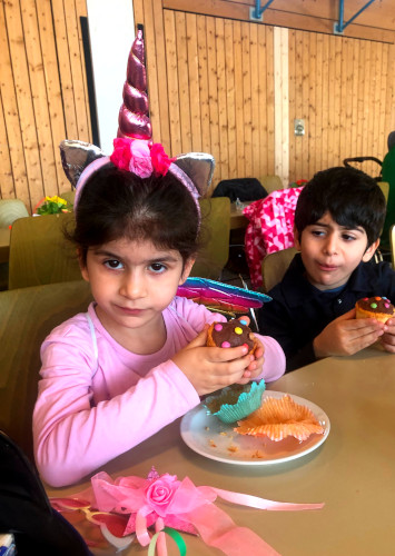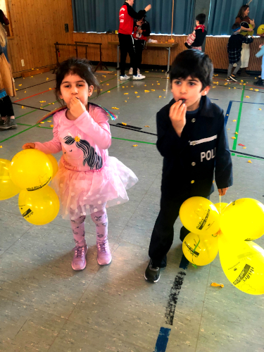 gibts Musik, Spaß, Spiel, Tanz uuund Süßigkeiten. Nicht nur in Mainz, Köln und Düsseldorf, sondern auch in Merdingen bei der Kinderfasnet. Da wollten auch unsere Flüchtlingskinder mit von der Partie sein. Leider waren einige krank, so daß nur zwei tapfere „Narren“ beim lustigen Treiben in der Halle mit dabei waren. Sie hatten viel Freude maskiert durch die Halle zu toben, mit den Rekruten eine Polonaise zu machen, zu tanzen, knifflige Spiele auszuprobieren, … und nicht zuletzt Süßigkeiten zu sammeln. Wie jedes Jahr ein gelungener Nachmittag.